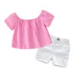 15 reviews for Baby Girl Pink Blouse Top, Ripped Jeans Shorts Short Sleeve