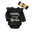 10 reviews for Baby Mommy Bestie Text Print Onesie Short Sleeve Bodysuit, Ribbon Bow Headband 2 pcs Set
