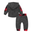 Stylish baby hoodie track pants tracksuit outfit 2 pieces for newborn & infant boys and girls. Long sleeve hoodie to keep active arms warm. Single front button closure for easier fitting. Banded cuffs to keep sleeves from riding up. Extra padding on elbow for added protection. Front pocket in checker pattern for a trendy look. Pull-on pants with drawstring for easy fitting. Soft cotton material ideal for young skin. Clothing is machine wash safe. More sizes are available for this baby clothing set. Check out our line of tops & bottoms for more baby hoodie track pants outfit.