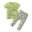 Lovely baby dinosaur sleepwear 2 pieces with shirt and pants for newborn & infant boys and girls. Cute hungry snackosaurus dinosaur print on tee. Short sleeve t-shirt to keep active arms cool. Crew neckline for easy over the head fitting. Adorable all-over dinosaur print on pants. Elastic pull-on pants for easy fitting. Banded cuffs to keep sleeves from riding up. Soft cotton material ideal for young skin. Clothing is machine wash safe. More sizes are available for this baby clothing set. Check out our line of tops & bottoms for more baby dinosaur sleepwear outfit.
