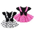 10 reviews for Dotted Pattern Suspender Dress with Ribbon Bow & Plain Color Top Short Sleeve