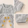 Lovely baby knitted overalls tailored for newborn, infant, and toddler boys & girls. Short sleeve overalls with banded cuffs to keep sleeves from riding up. Adjustable suspenders strap with button on shoulders for a finer adjustment. Complete the look with a matching pattern beanie hat. Made from softest woven fabric against delicate skin. Clothing is for hand wash only. More sizes and colors are available for this baby clothing set. See more knitted overalls from our category of “Suspenders & Overalls” baby wear.