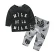 Lovely baby T-Shirt and pajama pants 2 piece sleepwear set features “Milk” text print and graphic pine cones on pants for newborn & infant boys and girls. Long sleeve shirt to keep active arms warm. Pull-over style Tee for easy over the head fitting. Crewneck neckline for a cozy fit. Shoulder snaps for easy dressing. Nickel free metal snaps to prevent skin irritation. Pull-on pants with elastic waistband for easy fitting. Made from softest cotton kind to young skin. Clothing is machine wash safe. More sizes are available for this baby clothing set.