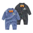 Trendy baby bow tie one-piece outfit features rainbow embroidery and stripe pattern for newborn & infant boys. Long sleeve jumpsuit to stay warm. Folded Polo collar neckline. Front button closure for quick dressing. Snaps along diaper line allowing quick diapering. Nickel free metal snaps against delicate skin. Made from softest cotton against delicate skin. Clothing is machine wash safe. More sizes and colors are available for this baby clothing set.