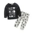 Adorable baby T-Shirt and pajama pants 2 piece sleepwear set features “New Kid on the Block” quote and flower printing on pants for newborn & infant boys and girls. Long sleeve shirt to keep active arms warm. Pull-over style top for easy over the head fitting. Crewneck neckline for a cozy fit. Shoulder snaps for easy dressing. Nickel free metal snaps to prevent skin irritation. Pull-on pants with elastic waistband for easy fitting. Made from softest cotton kind to young skin. Clothing is machine wash safe. More sizes are available for this baby clothing set.