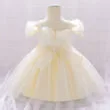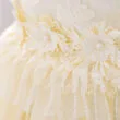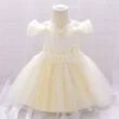 Beautiful baby flower patch wedding gown tailored for newborn, infant, and toddler girls. Sleeveless shoulder strap dress with sheer fabric around the shoulders. Rear zip up closure for easier fitting and dressing. Intricate beading bodice with flower patch along the waist. Cinched waist with ribbon bow tie knot on the back. Soft ruffled sheer fabric along the skirt with flaring effect. Soft blend of synthetic fabric ideal for young skin. Clothing is for dry cleaning or hand wash only. More sizes and colors are available for this baby clothing set. See more flower patch wedding gown from our category of “Wedding” dresses for baby girls.