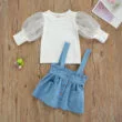 23 reviews for Puff Shoulder Plain Shirt Long Sleeve & Button Suspender Dress