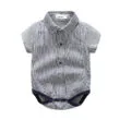 Casual baby stripe pattern Polo onesie and khaki shorts for newborn & infant boys. Short sleeve bodysuit to keep active arms and legs cool. Folded Polo collar neckline. Front chest pocket for a stylish look. Crotch-snap closure for easier diaper changing. Nickel free metal snaps against delicate skin. Pull-on shorts with elastic waistband for easy fitting. Belt loops along waist for better fitting. Two functional pockets for keeping your hands warm. Made from softest cotton kind to young skin. Clothing is machine wash safe. More sizes are available for this baby clothing set.