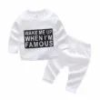 Funny baby T-shirt and pajama sweatpants 2 piece sleepwear set features “Wake me up when I’m Famous” quote for newborn & infant boys and girls. Long sleeve Tee to stay warm. Pull-over style shirt for easy over the head fitting. Crewneck neckline for a cozy fit. Pull-on jogger pants with elastic waistband for easy wearing. Made from softest cotton against delicate skin. Clothing is machine wash safe. More sizes are available for this baby clothing set.