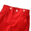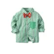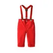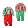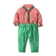 Cute baby Christmas suspenders outfit 4 pcs set for infant & toddler boys. Long sleeve button shirt in colorful stripe pattern. Front button closure with button cuffs for easier fitting. A pair of matching elastic pants with 2 functional pockets to carry your toys. Adjustable suspenders allowing fine length adjustment. Braces are removable depending on your wearing preference. Lastly, do not forget to put on a bow tie to celebrate your Christmas holiday. Made from softest cotton kind to young skin. Clothing is machine wash safe. More sizes and colors are available for this baby clothing set. Check out our “Suspenders / Overalls” category for more baby Christmas suspenders outfit.