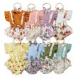 Beautiful floral pattern suspender skirt outfit available for infant & toddler girls. Short sleeve shirt with large butterfly shoulders in ribbed pattern fabric. Shoulder straps can be easily adjustable with a simple tie knot at the back. Elastic waistline for a better fitting of various waist sizes. Snaps along the diaper line for quick diaper changing. Outfit comes with a matching flower pattern ribbon bow headband to complete the look. Soft cotton material ideal for young skin. Clothing is machine wash safe. More sizes and colors are available for this baby clothing set. See more floral pattern suspender skirt from our “Floral” collection of baby wear.