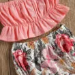 15 reviews for Off Shoulder Plain Top & Flower Pattern Bloomers with Matching Headband Short Sleeve