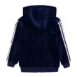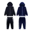 Comfy baby stripe hoodie tracksuit set tailored for infant & toddler boys and girls. Long sleeve hooded tracksuit with long streaking stripes on the side. Hooded jacket with front zip up closure and 2 side pockets to keep little ones warm in the cold. A pair of matching elastic joggers fitting various waist sizes. Banded cuffs to keep sleeves from riding up. Made from softest cotton against delicate skin. Clothing is machine wash safe. More sizes and colors are available for this baby clothing set. See more stripe hoodie tracksuit from our category of baby “Tops & Bottoms”.