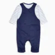 Adorable baby stripe pattern onesie and overalls 2 piece set features puppy dog embroidery on chest for newborn & infant boys. Long sleeve bodysuit to stay warm. Snaps opening on shoulder for easier dressing. Crotch-snap closure for easier diaper changing. Overalls with shoulder button style belt strap and side buttons for easier dressing. Snaps along diaper line allowing quick diapering. Nickel free metal snaps to prevent skin irritation. Made from softest cotton against delicate skin. Clothing is machine wash safe. More sizes are available for this baby clothing set.