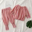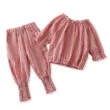 Baby Girl Cherry Stripe Off Shoulder Top, Harem Pants Long Sleeve 2 pcs Set