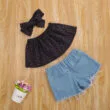 11 reviews for Baby Girl Polka Dot Crop Top & Ripped Denim Jean Shorts & Ribbon Headband 3 pcs