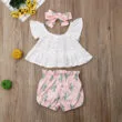23 reviews for Baby Girl See Through Ruffle Blouse, Flower Shorts, Ribbon Headband 3 pcs