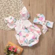 Trendy baby suspender onesie and ribbon bowknot headband 2 piece set features all-over floral flower print for newborn & infant girls. Backless bodysuit for warmer weather. Ruffle sleeve for a stylish new look. Stretchy waistband for a cozy fit. Crotch-snap closure for easier diaper changing. Nickel free metal snaps against delicate skin. Made from softest cotton kind to young skin. Clothing is machine wash safe. More sizes are available for this baby clothing set.