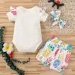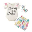 18 reviews for Daddy is my Bestie Letter Print Onesie, Pineapple Bloomer Shorts, Ribbon Headband Short Sleeve for Girls