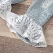 Lovely baby floral crochet onesie & ripped jeans set tailored for infant and toddler girls. Long sleeve see through fabric with flower pattern crochet, appropriate for warm weather. Extra wide neckline for easy over the head fitting. Snaps along the diaper line for quick diaper changing. A pair of elastic denim pants, fitting various waist sizes. Matching floral pattern on cuffs with flare cutting, resembling a bell bottom jeans. Made from softest cotton against delicate skin. Clothing is machine wash safe. More sizes are available for this baby clothing set. See more floral crochet onesie set from our category of “Tops & Bottoms” baby wear.