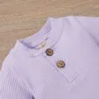 Lovely Henley style sleepwear tailored for newborn, infant, and toddler boys & girls. Long sleeve ribbed pattern bodysuit with 2 buttons on placket for easy over the head fitting. Snaps along the diaper line for quick diaper changing. A pair of matching design pants with drawstring, fitting various waist sizes. Banded cuffs to keep sleeves from riding up. Made from softest cotton against delicate skin. Clothing is machine wash safe. More sizes and colors are available for this baby clothing set. See more Henley style sleepwear from our category of “Sleepwear” for infants & toddlers.