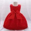 Beautiful baby ribbon bow sheer gown tailored for newborn, infant, and toddler girls. Sleeveless dress with all-over intricate ruffled placement for an elegant feature. Large ribbon bow attached at front along the waistline as added feature to its beauty. Rear zip up with lacing on the back for better fitting and comfort. Made from softest blend of synthetic fabric kind to young skin. Clothing is for dry cleaning or hand wash only. More sizes and colors are available for this baby clothing set. See more ribbon bow sheer gown from our collection of “Princess” baby wear.
