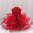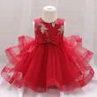 Beautiful baby princess wedding floral sequins dress tailored for newborn, infant, and toddler girls. Sleeveless ballgown with rear zip up closure for easier fitting and dressing. Shiny decorated flower pedals with golden sequins on bodice and large ribbon bow attached on front and back along the waistline. Matching color tulle in ruffles spread along the skirt. Soft blend of synthetic fabric ideal for young skin. Clothing is for hand wash or dry clean only. More sizes and colors are available for this baby clothing set. See more wedding floral sequins dress from our “Wedding” category of baby wear.