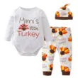 Baby Boy’s & Girl’s Thanks Giving Turkey Onesie Bodysuit Long Sleeve Cartoon Print, Pullover Pants, and Hat Outfit